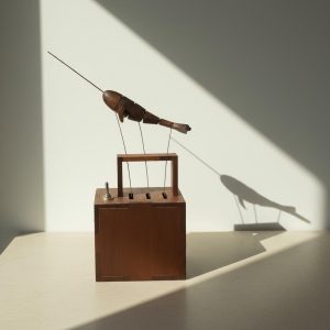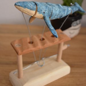 Handcrafted wooden mechanical animals — dolphins, manta rays, running dogs, birds and more.