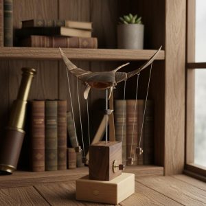 Wooden Manta Ray Kinetic Desk Sculpture – Mechanical Moving Wood Automata Decor