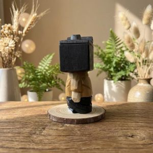 Handmade Wooden Camera Head Figurine – Vintage Style Wood Carving for Photographer Decor