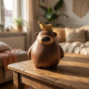 Handmade Wooden Bear Figurine – Rustic Desk Decor Forest Animal Wood Sculpture