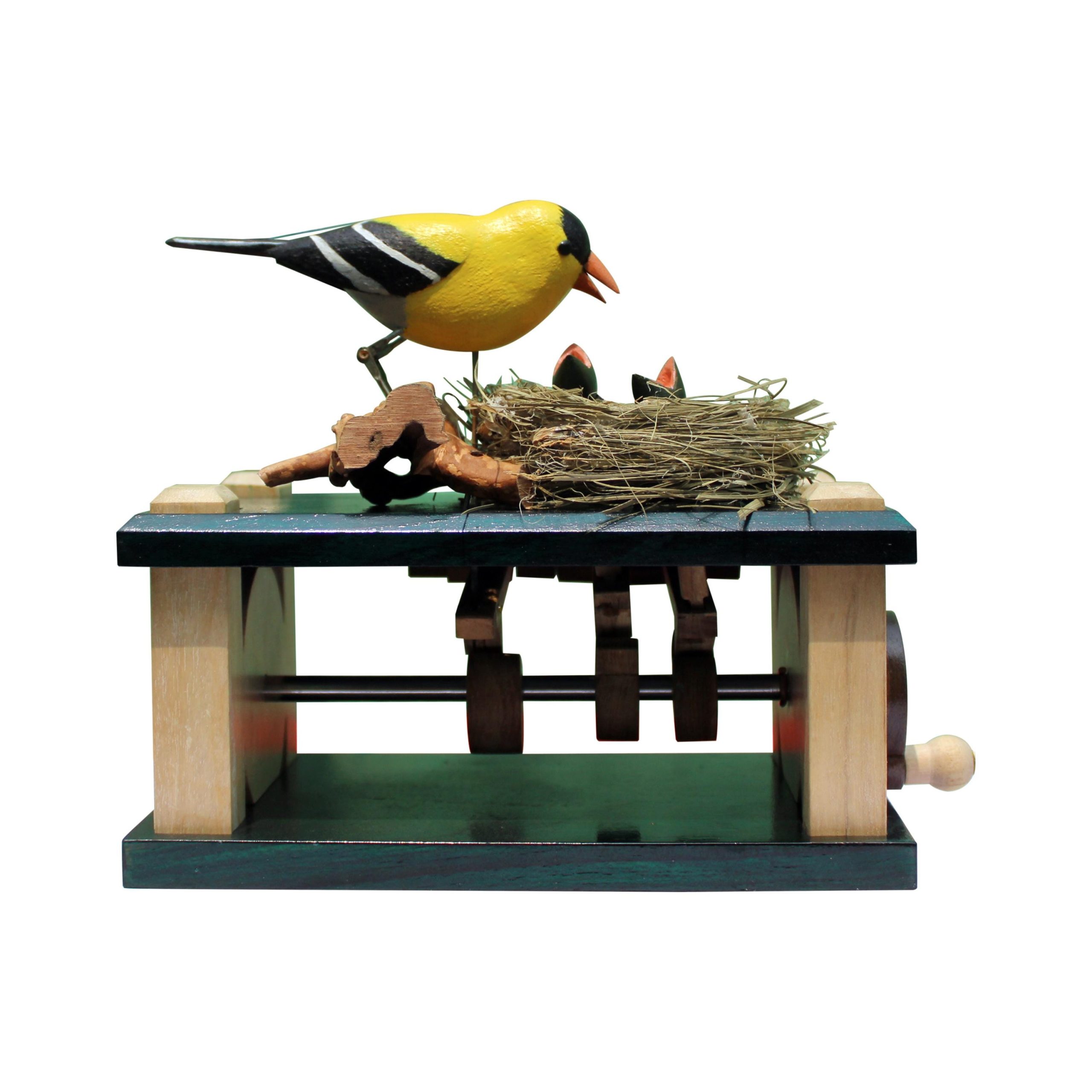 Wooden Bird Family Automaton – Handcrafted Kinetic Sculpture with Mechanical Movement