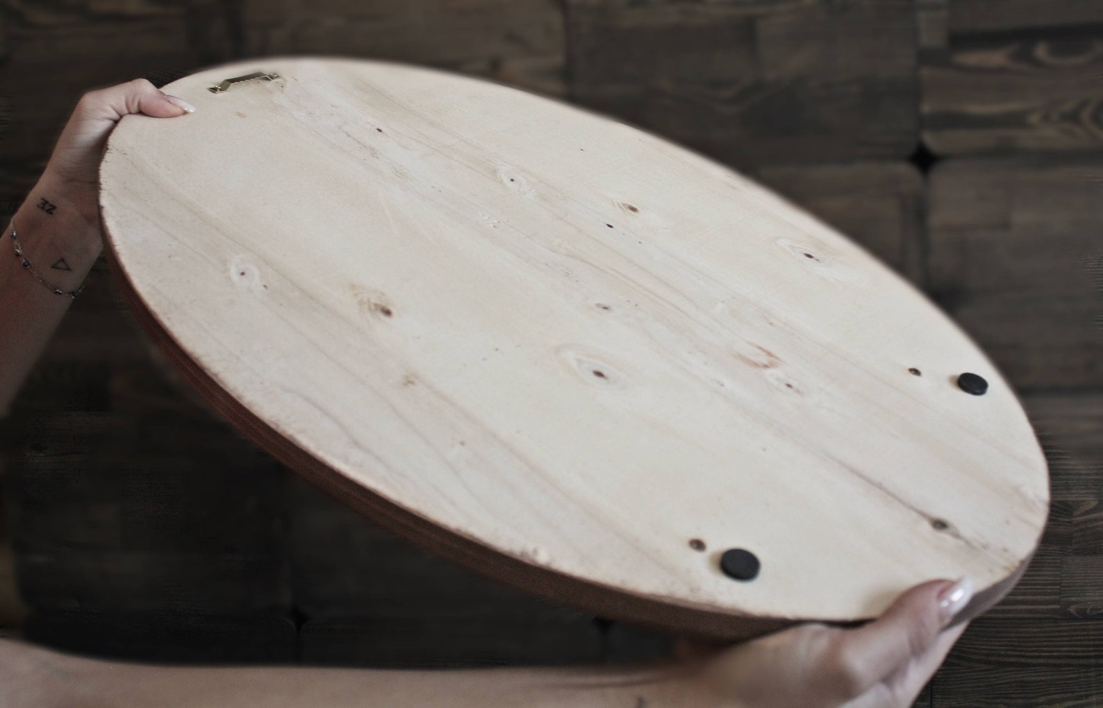 Oval Wooden Wall Plaque with Field Pattern – Natural Wood Antique-Style Wall Decor