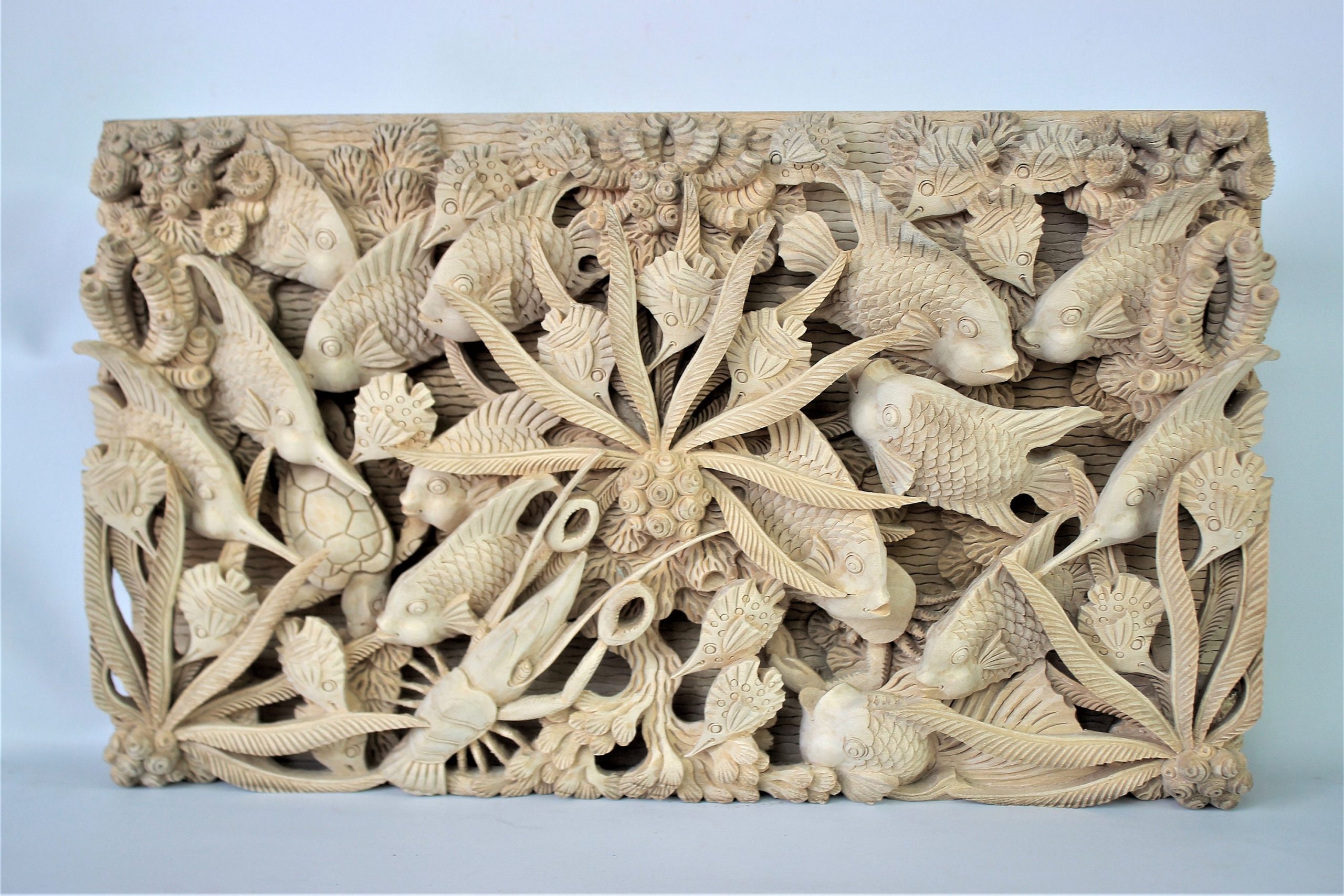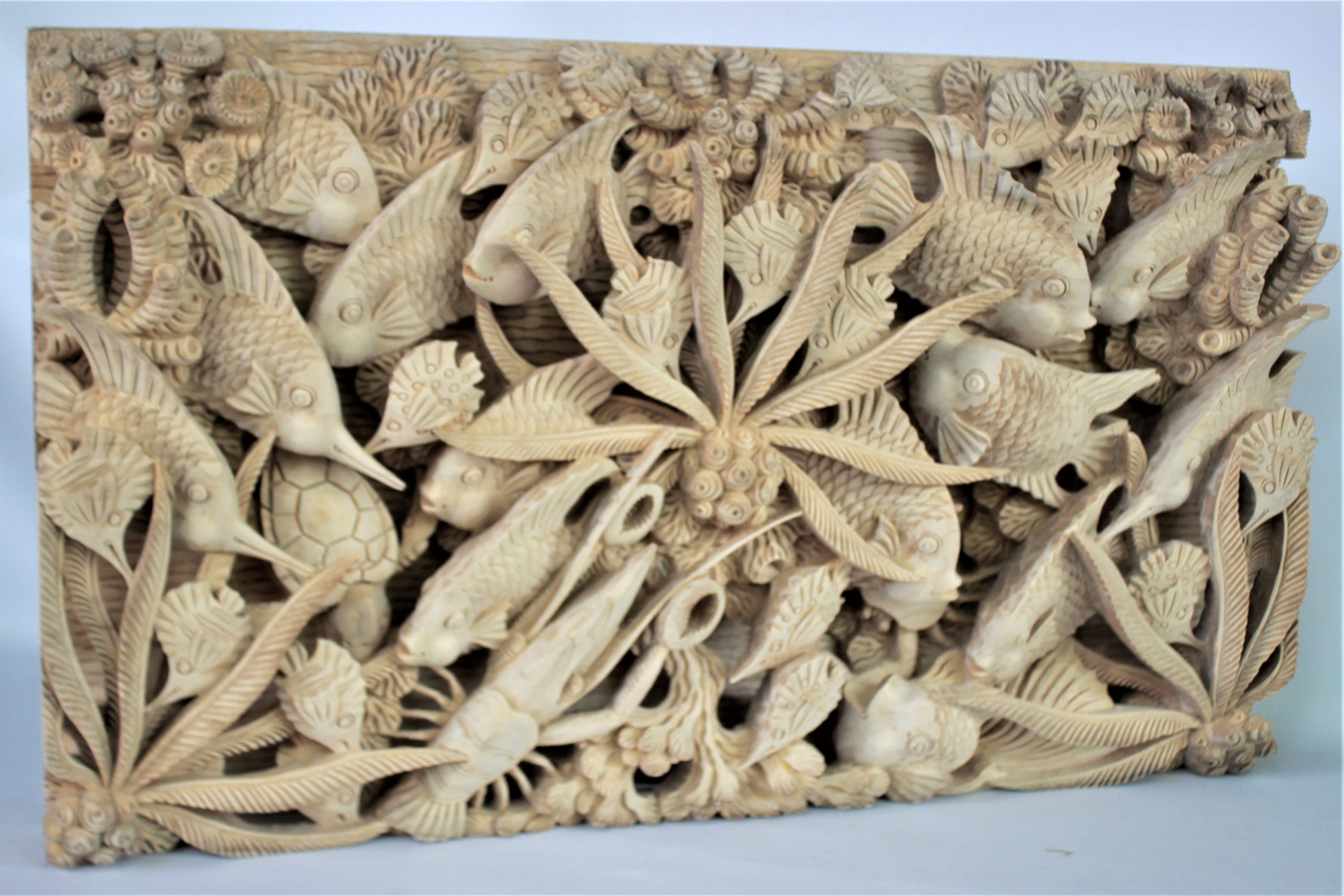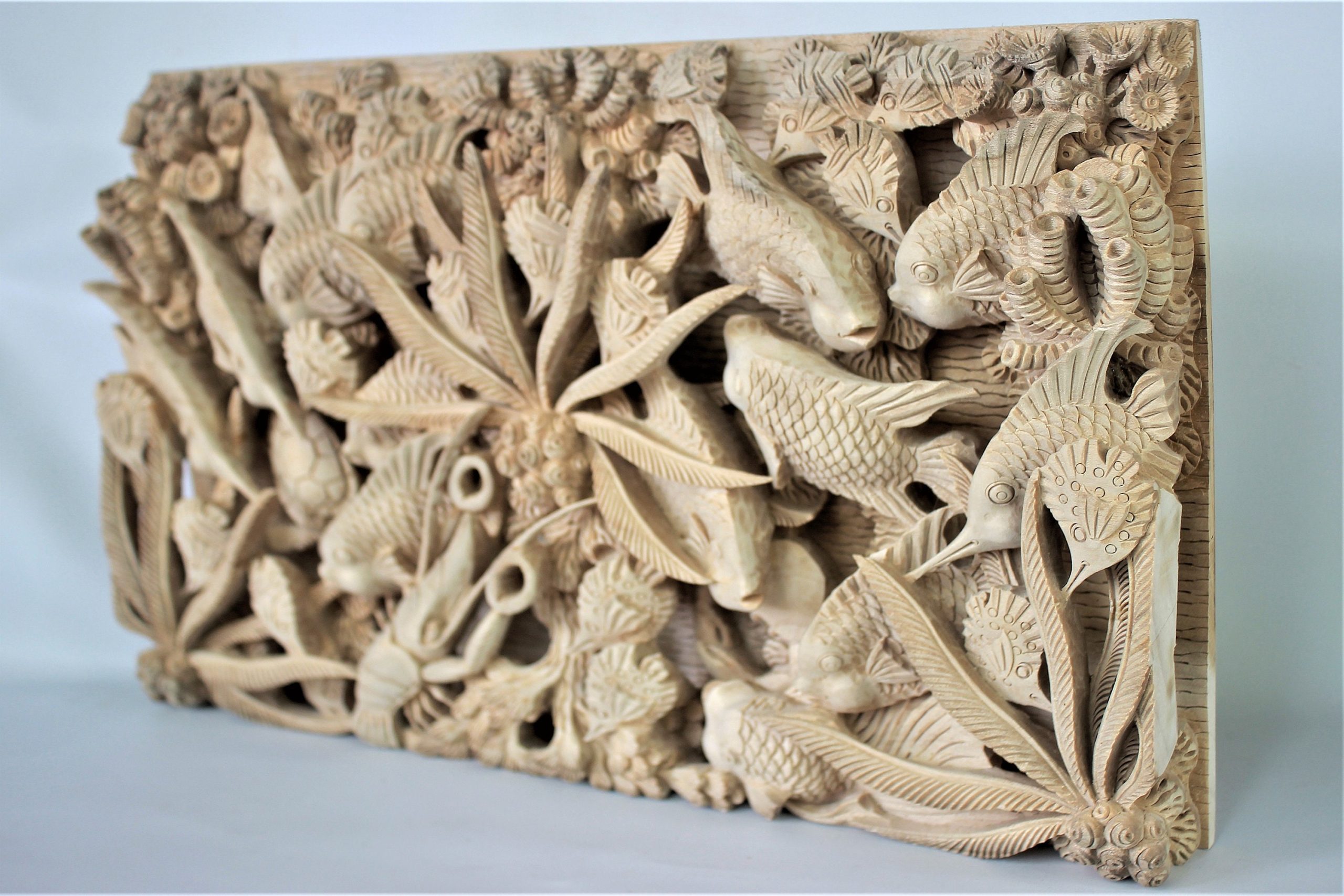 Hand Carved Balinese Wooden Fish Sculpture – Coastal Nautical Wall Art Decor