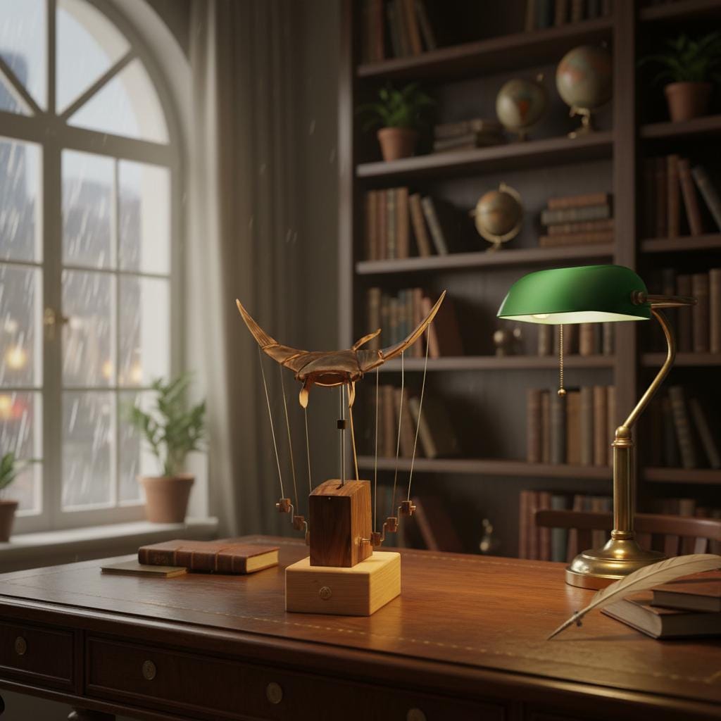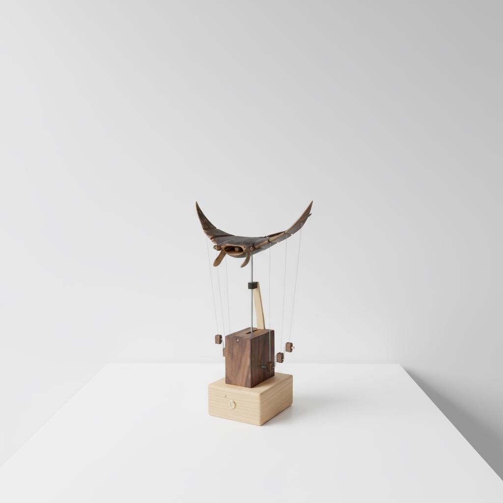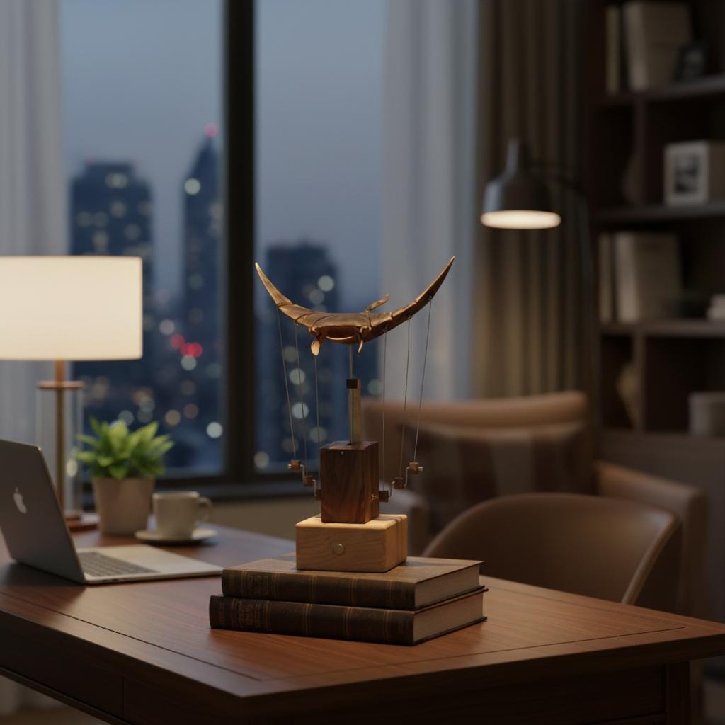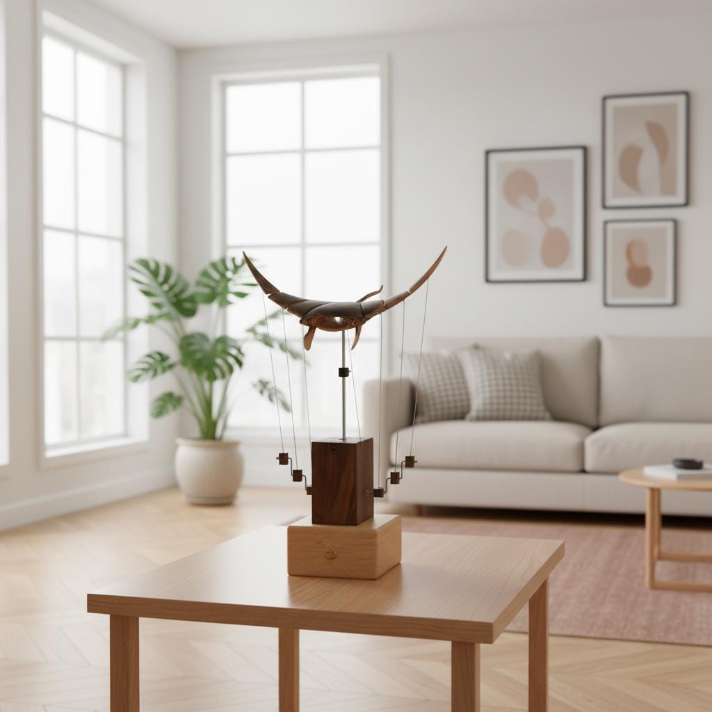Wooden Manta Ray Kinetic Desk Sculpture – Mechanical Moving Wood Automata Decor