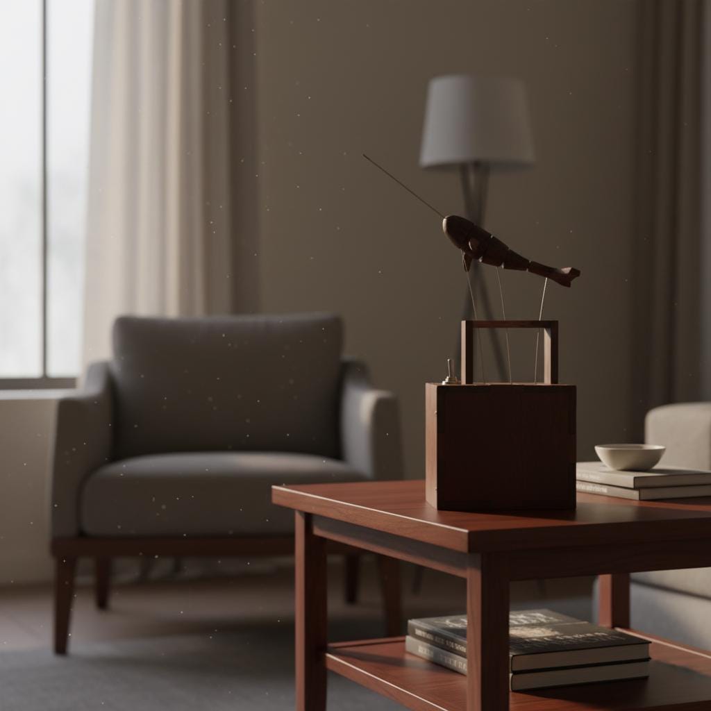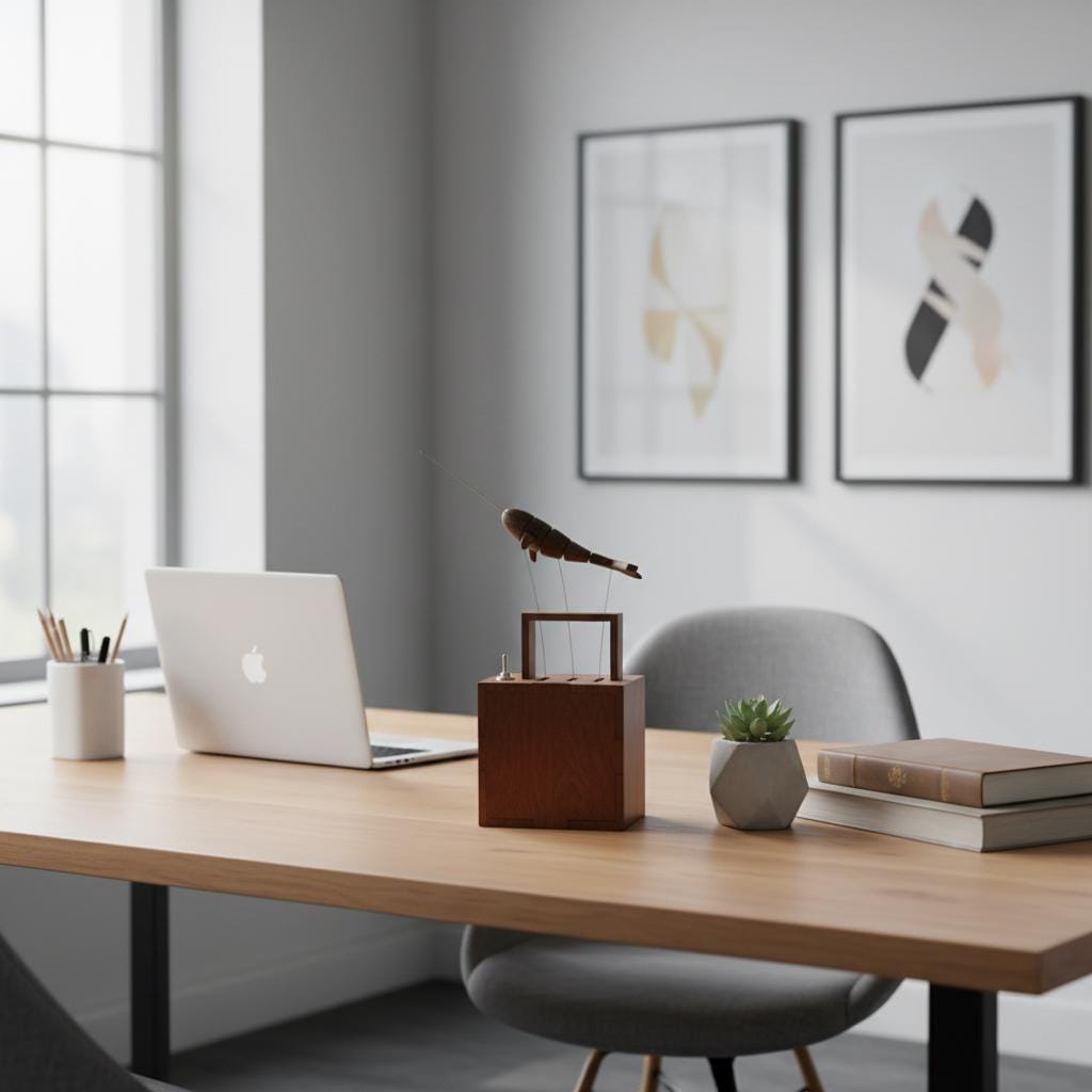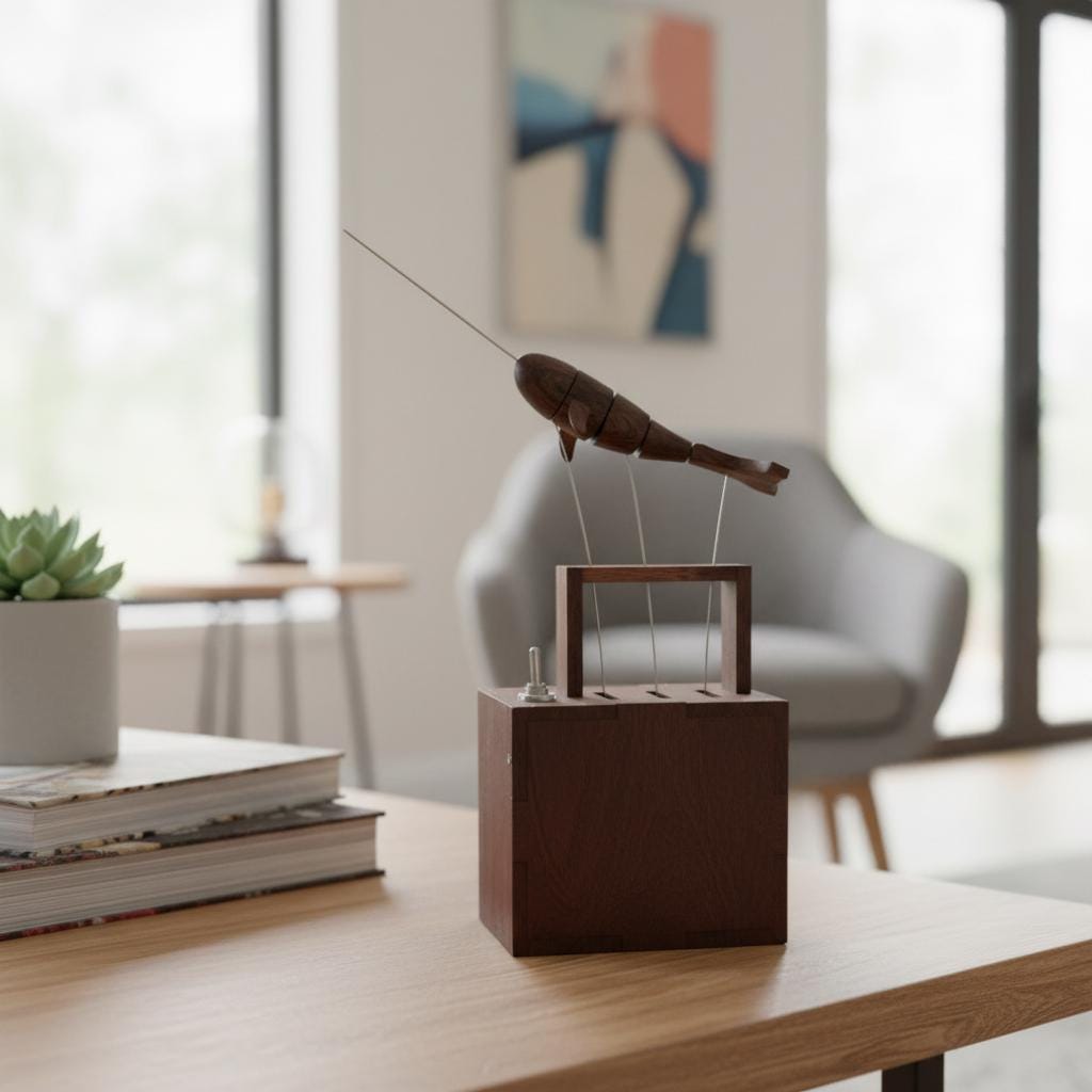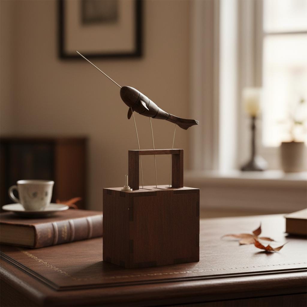 Wooden Whale Automata Sculpture – Handcrafted Mechanical Kinetic Art Piece for Desk