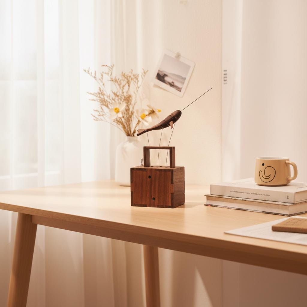 Wooden Bird Family Automaton – Handcrafted Kinetic Sculpture with Mechanical Movement